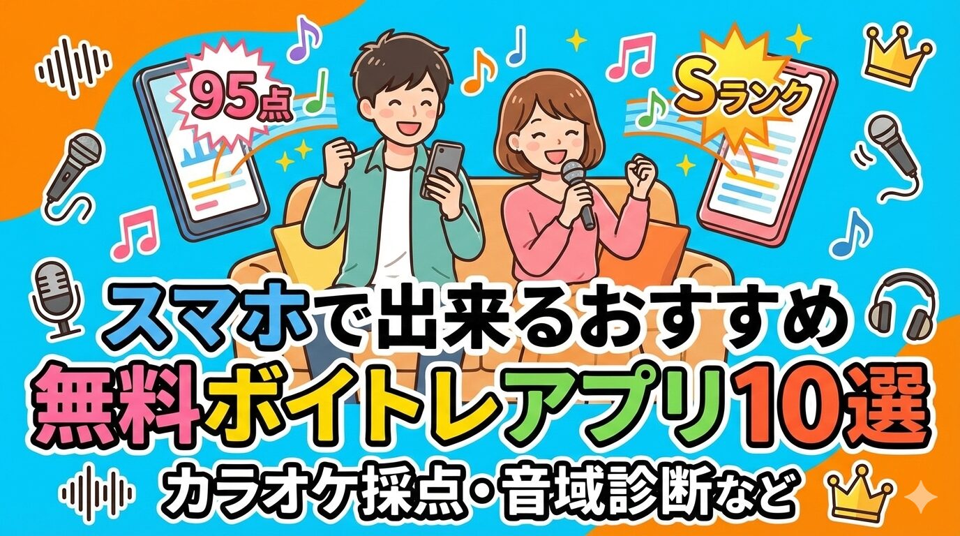 そんなときに役立つのが、無料で使えるボイストレーニングアプリです。スマホひとつで音域チェックや採点、リズム感の強化までできるので、おうちにいながら本格的な練習が可能になります。