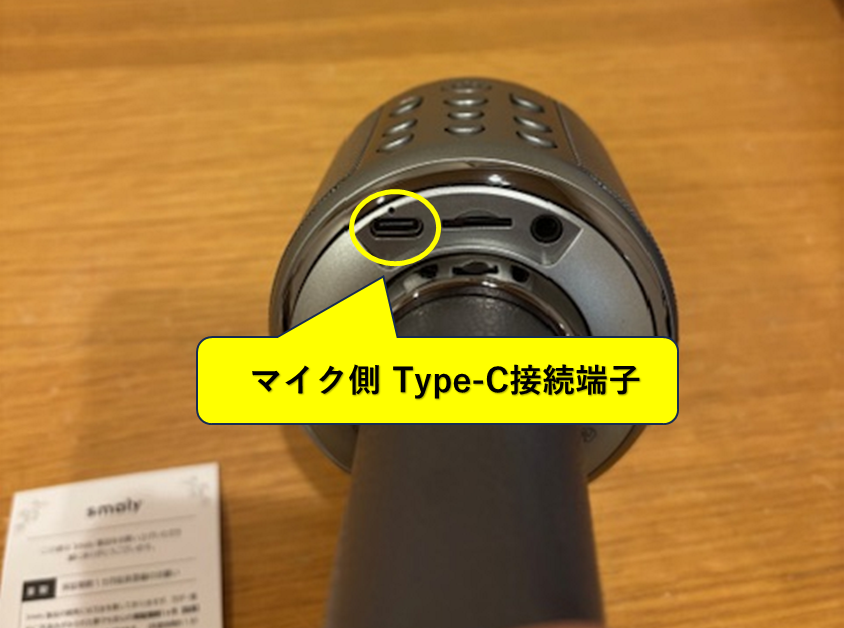 - ケーブルのもう一方の「Type-C」側を、マイク本体の差し込み口に接続します。