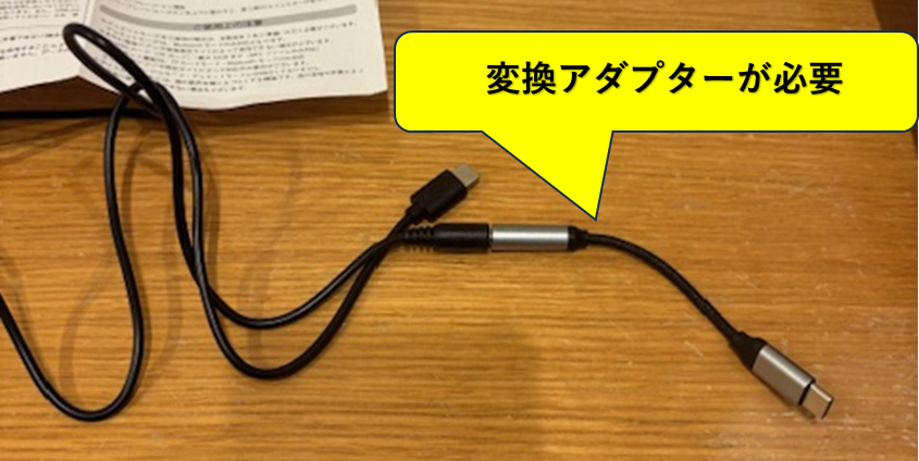 - iPhone (Lightning端子) の場合: LightningまたはType-c → 3.5mm オーディオジャックアダプタ