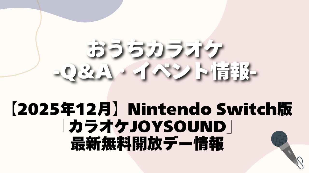 【2025年11月】 Nintendo Switch版『カラオケJOYSOUND』 最新無料開放デー情報