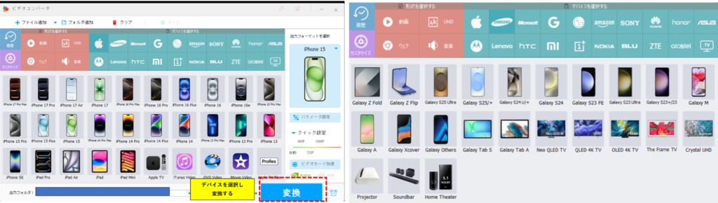 ③送信したいデバイスを選択し、「変換」を押します。