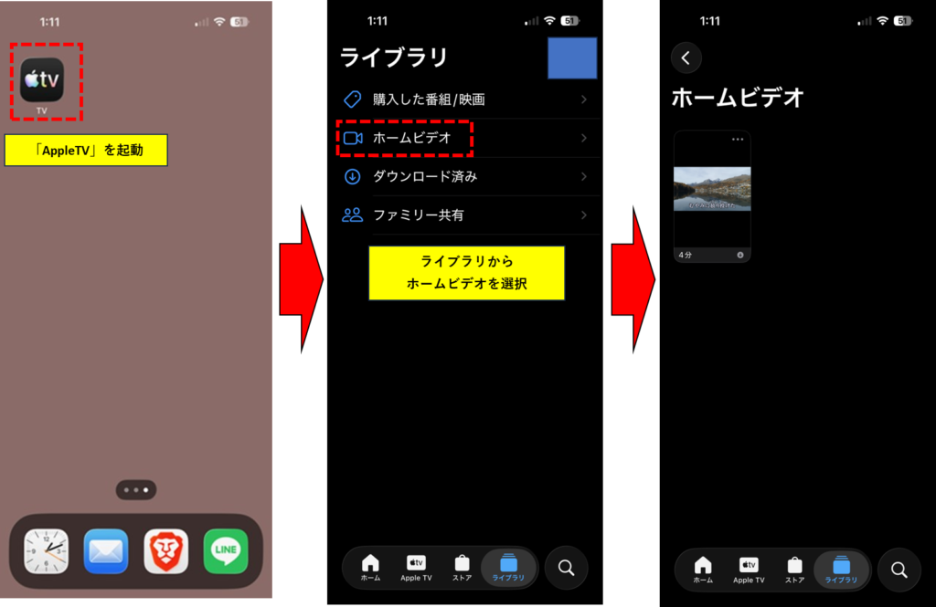 ⑤Iphoneで送信された動画を確認します。動画はAppleTVというアプリに入っているので起動します。
