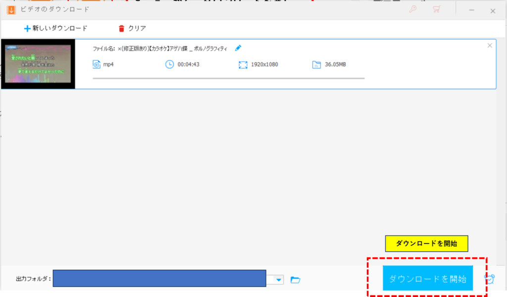 クリックするとビデオのダウンロードというウィンドウが出るので、左上にあり「新しいダウンロード」を押します。